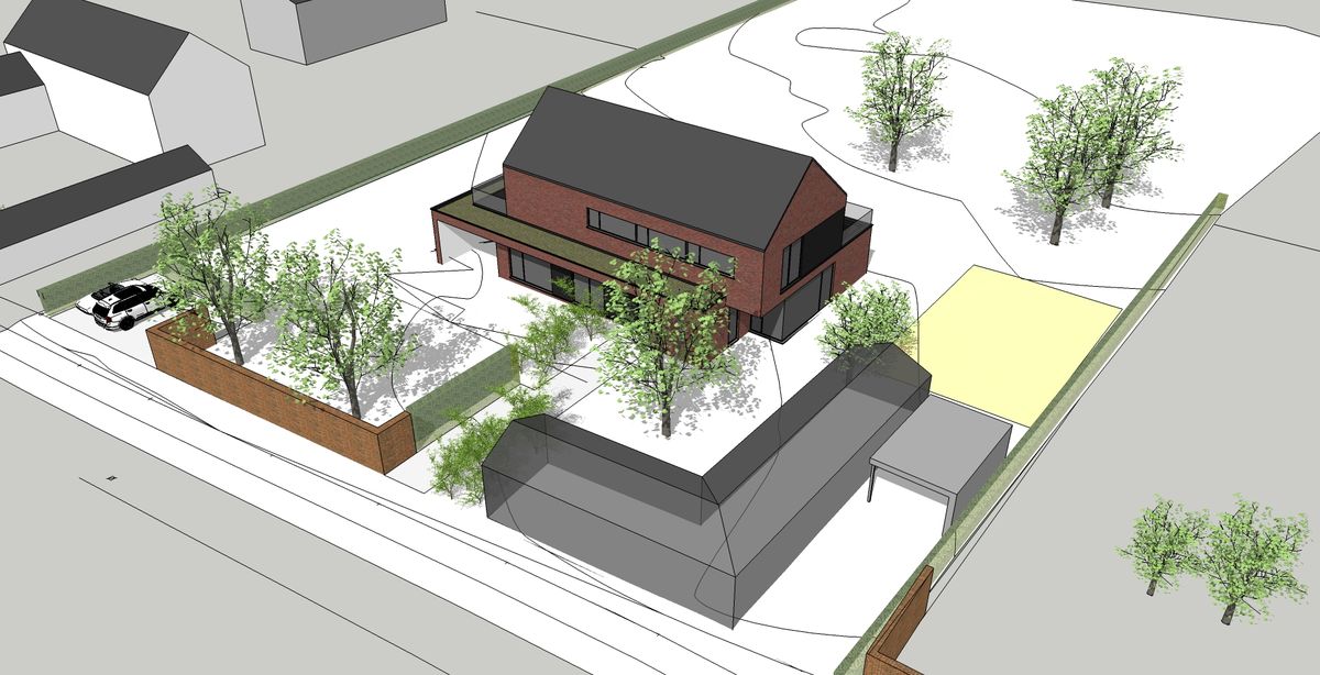 Programme: construction d’une maison contemporaine et des boxes pour chevaux.