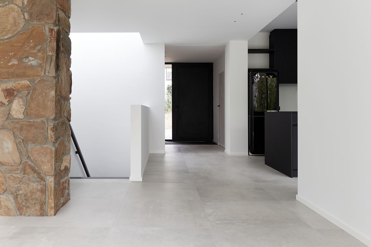 À l’intérieur, l’opération a permis d’obtenir le confort d’une habitation actuelle. Des surfaces dégagées et une circulation facilitée offrent désormais plus de fluidité dans l’utilisation des espaces. En effet, les plans d’origine coupaient littéralement la maison en deux, en ne prévoyant aucune connexion entre les pièces de vie et les chambres en contrebas. La création d’une grande cage lumineuse a inversé la tendance et redonné une allure à la fois plus contemporaine et plus aérée à cette belle villa haut de gamme. Un puits de lumière en haut de la cage d’escalier contribue également à conférer au lieu un aspect plus design et léger.