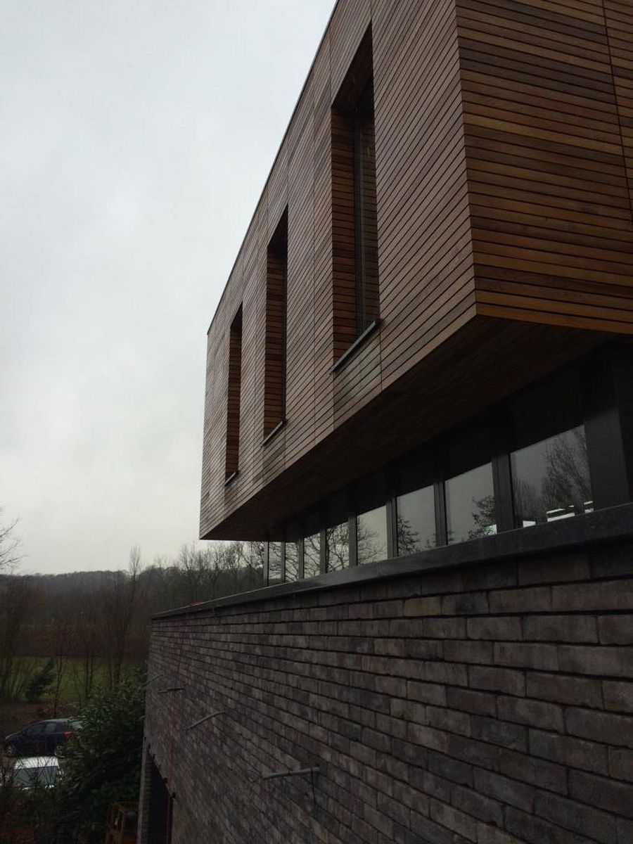 L’extension de cette maison traditionnelle est en parfaite harmonie avec la nature. Non seulement par le choix des matériaux mais aussi et surtout grâce à une façade rideau à l’arrière de la nouvelle construction.